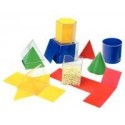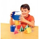 Boîte de 8 figures tridimensionnelles à reconstituer. Contenu de la boîte : cube, cylindre, cône, pyramide à base carrée, pyramide à base triangulaire, prisme à base hexagonale, rectangulaire et triangulaire. L''enfant à l''aide de la gaine transparente servant à contenir la forme pliée permet de la présenter dans sa forme tridimensionnelle.Exercice : calcul du volume, symétrie, périmètre, aire et volume.Manuel explicatif joint à la boîte.A partir de 7 ans.
