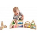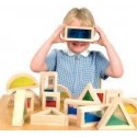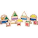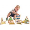 Boîte de 16 blocs sensoriels formes géométriques. Díune finition en bois épurée et douce, ces blocs sont très qualitatifs.4 formes différentes : carré, rectangle, demi cercle et triangle4 couleurs différentes : bleu, rouge, vert et jaune4 contenus différents : sable, eau, bille et verre acrylique.Les enfants peuvent combiner et assembler les formes quíils souhaitent et observer à travers les blocs et síamusent également avec leur différent contenant.A partir de 18 mois.