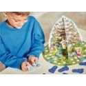 La montagne aux chiffres. Contenu de la boîte : 1 plateau de jeu, 1 montagne en 3D en deux parties, 4 pions et socles pour personnages, 1 pièce sommet, 10 cartes empreintes de pas, 3 cartes yéti. Après avoir assemblé le plateau et la montagne 3D et à l’aide des cartes, les enfants progressent dans le jeu et doivent arriver au sommet de la montagne pour emporter la partie. Jeu d’observation et de premiers calculs. De 2 à 4 joueurs A partir de 4 ans