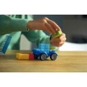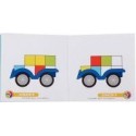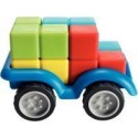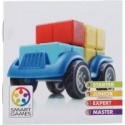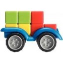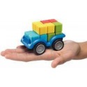 Smartcar mini. Contenu du Jeu : un châssis de véhicule en PVC (8.5x5 cm), 4 pièces géométriques de 4 couleurs différentes, un livret de 24 défis. L’enfant choisit un défi (classé par difficulté) et dispose les blocs à côté du châssis. Il doit repositionner dessus ses 4 blocs et les faire correspondre à son défi. Il n’y a qu’une solution par défi. A partir de 6 ans