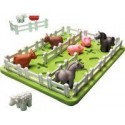 Il était une ferme. Contenu du Jeu : un support de jeu en PVC avec 4 barrières fixes et 3 mobiles, 2 chevaux, 2 vaches, 2 moutons, 2 cochons, 3 abreuvoirs et un livret de 60 défis avec solutions. L’enfant sélectionne un défi et positionne les éléments sur le support. Il doit alors déposer les clôtures afin de séparer les différents animaux au sein de la prairie. Dans les défis difficiles, chaque prairie doit avoir son propre abreuvoir. Stimule la concentration, l’intelligence spatiale et les compétence cognitives. A partir de 5 ans