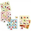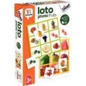 Loto photo des fruits. Contenu de la boîte : 4 plateaux réversibles 18x18cm en carton épais, 36 pièces 5x5cm (photos véritables), une fiche avec la traduction en langues des 36 fruits et une notice. But du Jeu : principe habituel du loto, l’enfant tire une pièce et la place sur son plateau. Ces derniers étant réversibles accentuent les possibilités et les variantes de jeux proposées dans la notice. Intérêts Pédagogiques : Développement du vocabulaire et de la perception. A partir de 3 ans. De 2 à 4 joueurs.