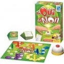 Ni oui ni non. Contenu de la boîte : un plateau de jeu 28x28 cm en carton épais, 1 sonnette, 6 pions, 1 support de rangement, 55 cartes enfant, 55 cartes adulte, un étui de 55 cartes et 1 notice. But du Jeu : après avoir tiré une carte, l’enfant pose un maximum de question à son adversaire afin de l’inciter à répondre OUI ou NON et ainsi perdre la manche. Intérêts Pédagogiques : développe le vocabulaire et la spontanéité tout en s’amusant. A partir de 7 ans. De 2 à 6 joueurs.
