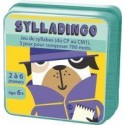 Sylladingo. Petite boîte en fer refermant un certain nombre de cartes avec des exercices sur différents thèmes. Parfait pour une récréation, l’étude ou un atelier pédagogique. A utiliser sans modération pour un enrichissement de l’enfant garanti ! Jeu de syllabes du CP au CM1, 3 jeux pour composer 700 mots A partir de 6 ans. De 2 à 6 joueurs.