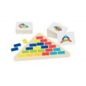 Le puzzle des segments. ~~Contenu de la boîte : Une pyramide en bois 25x15.5xm, 10 pièces puzzle de différents couleurs et 20 modèles imprimés recto-verso. But du Jeu : l’enfant choisit une carte modèle et doit reconstituer sur la pyramide à l’aide des 10 pièces puzzle le même dessin. A partir de 4 ans.