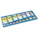Set de 40 billets et 55 pièces magnétiques. Contenu : 5 billets de 200ğ, 10 billets de 100ğ, 5 billets de 50ğ, 5 billets de 20ğ, 10 billets de 10ğ, 5 billets de 5ğ, 5 pièces de 2ğ, 10 pièces de 1ğ, 5 pièces de 50 centimes, 5 pièces de 20 centimes, 10 pièces de 10 centimes, 5 pièces de 5 centimes, 5 pièces de 2 centimes, 10 pièces de 1 centimes, 20 signes d’opérations. Le tout est magnétique.Dimensions de l’organiseur : 73x28.5cm.A partir de 5 ans.