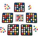 Speedy Match. Contenu de la boîte : un boulier scellé en PVC avec 20 billes de couleurs, 5 plaques perforées en EVA et 125 pions de 5 couleurs différentes. But du Jeu : un enfant secoue le boulier et le place au milieu de la table, chaque enfant doit reproduire le motif du boulier avec ses pions. Règles évolutives selon les niveaux. Intérêts Pédagogiques : Jeu d’observation et de concentration. A partir de 4 ans.