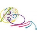Laçage malin. Contenu de la boîte : une boule en PVC rigide (diam 12cm env.) avec plusieurs trous avec contours colorés, 10 lacets PVC colorés de 18.5cm, 5 cartes recto/verso de modèles par niveaux. L’enfant passe un lacet dans un trou de la même couleur et accroche un second pour faire une chaîne tout en s’enroulant autour de la boule. Coordination, motricité fine, logique, développement du toucher. Les cartes modèles peuvent être utilisées pour les plus aguerris. A partir de 12 mois