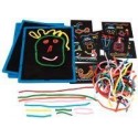 Atelier de 4 ardoises fil relief. Contient : 4 ardoises auto-agrippantes, 56 cordelettes de tailles et de couleurs assorties et 12 fiches modèles recto/verso. Les enfants peuvent reproduire les modèles proposés ou faire preuve d''imagination. Système de velcro : facile à enlever et recommencer. Dimensions d''une l''ardoise (L x l): 30 x 22,5 cm. Dès 3 ans.