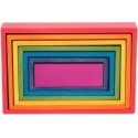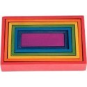 Boite 7 rectangles arc-en-ciel en bois. En hêtre naturel aux 4 formes géométriques - carrés, rectangles, triangles et arcs. Chaque groupe de formes contient 7 tailles différentes pour un encastrement parfait avec les 7 couleurs de l’arc-en-ciel. Au centre une forme géométrique complète. Offrira des possibilités infinies de créativité, de construction et d’imagination. Apprentissage des couleurs, des formes géométriques, classer, trier : une multitude de possibilité ! Dimensions : Hauteurs : 40mm, 58mm, 76mm, 94mm, 112mm, 130mm, 148mm. Longueurs : 114mm, 132mm, 150mm, 168mm, 186mm, 204mm, 222mm. A partir de 2 ans