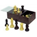 Set de 32 pions d''échecs en plastique. Hauteur : de 3.7 à 6.7cm.