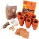 Coffret nourrir les oiseaux. Kit pour faire des mangeoires dans des petits pots en terre cuite afin de nourrir les oiseaux en hiver. Activité sur une année complète. Les enfants préparent les pots de graines à oiseaux immédiatement et sèment les graines de millet et de tournesol pour obtenir des graines à la fin du printemps. Contenu : -1 fiche explicative - 30 pots en terre cuite d. 5/6cm - 40ml de gélatine alimentaire -