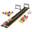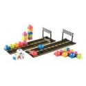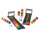 Mini circuit mathématiques. Contenu de la boîte : 2 pistes raccordables numérotées de 1 à 20 (62x7.5cm), 25 mini voitures de 5 couleurs, une ligne d’arrivée amovible, 3 dés en mousse et 1 guide d’activité. But du Jeu : la notice propose 9 règles de jeux différentes accès sur les calculs simples de 1 à 20, la reconnaissance des couleurs et les additions / soustractions. A la fois très ludique et qualitatif, il encouragera les jeunes enfants appréhendant les chiffres. A partir de 4 ans.