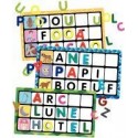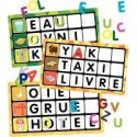 Loto lettres et mots. Contenu de la boîte : 10 carton de loto (29x17 cm) en carton épais, 122 lettres prédécoupées et un sac de rangement 100% coton biologique. Grâce au toucher, l’enfant reconnaît et pioche les lettres dans le sac pour composer des mots plus ou moins longs. Le premier à compléter son carton est le gagnant. Inspiré de la méthode Montessori. A partir de 3 ans