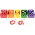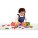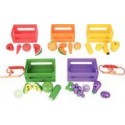 Set de 5 caisses fruits et légumes à trier. Contenu : 5 caissettes en bois empilables(L.15xH.6.7xP.10cm) contenant 20 fruits et légumes en bois de coloris assortis (rouge, jaune, violet, vert et orange). Produit très qualitatif, et très réaliste. Pour les exercices de tri, la reconnaissance des couleurs et la reconnaissance des fruits et légumes. A partir de 3 ans.