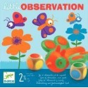 Little observation. Contenu : 9 papillons en plastique, 30 jetons en carton épais, 2 dés en bois, et 1 règle du jeu. But du jeu : L’enfant lance les 2 dés qui indiquent une combinaison de couleurs. Le premier joueur à attraper le papillon correspondant à la combinaison de couleur gagne un jeton. Le 1er joueur à totaliser 5 jetons gagne la partie. Intérêt pédagogique : observation, et rapidité. De 2 à 4 joueurs. Durée de la partie environ 10 minutes A partir de 2 ans _.