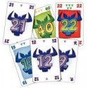 Six qui prend. Contenu de la boîte : 104 cartes de jeux Règle du Jeu : les cartes ont deux valeurs : une valeur numérique (de 1 à 104) qui indique leur future position et une valeur de 1 à 7 « têtes de bœufs » qui correspond à des points de pénalité. Le jeu est de récolter le moins de têtes de bœufs à la fin de la partie. Intérêts Pédagogiques : Ambiance, stratégie et interaction De 2 à 10 joueurs A partir de 10 ans.