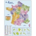 Carte géographique de la France. Carte murale plastifiée, plastique souple 70 microns, représentant les départements et régions de France. Échelle : 1 / 1 785 000è. Zoom Île-de-France, Corse, France dans le monde.Permet le marquage et l''effaçage au marqueur.Dimensions : 66 x 84,5 cm. Avec 4 œillets
