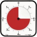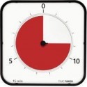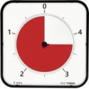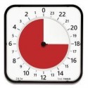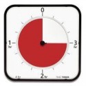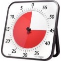 Minuteur time timer géant. 1 minuteur géant avec 8 réglages de temps différents, 3 cadrans recto/verso : 5min/15min, 30min/1h, 2h/vierge, 3 marqueurs visuels, 1 support de fixation. Simple d’utilisation, alarme avec 3 niveaux sonore : élevé, faible ou son coupé. Fonctionne avec 2 piles C (51271). Dimensions : 44x44cm