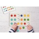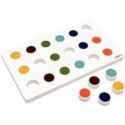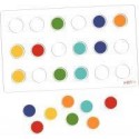 18 ronds en mousse + livret d''activités. Contenu : Plateau en mousse EVA, 18 pions en mousse, 1 livret de 18 activités But du jeu : Les pions sont à encastrer dans le plateau suivant le modèle choisi. Les activités proposées sont classées par difficultés croissantes. Les enfants peuvent également laisser libre cours à leur imagination. Intérêt pédagogique : Développe l’observation, la concentration, permet l’apprentissage des couleurs, le comptage de 1 à 6. Dimensions plateau : L.31xl.19cm Diamètre pion : 3.4cm A partir de 3 ans.