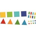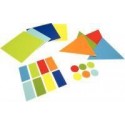 24 formes en mousse + livret d''activités. But du jeu : L’enfant reproduit le modèle choisi. Les activités proposées sont classées par difficultés croissantes. Intérêt pédagogique : Permet de développer l’observation, la concentration, la reconnaissance des formes et couleurs, et de situer un objet dans l’espace. Contenu : 24 formes géométriques en mousse EVA : 4 carrés, 4 triangles, 8 rectangles, 8 ronds. 1 livret d’activités de 18 modèles. Dimensions : Carré : 15x15cm Triangle : 15x15cm Rond : d. 3.2cm Rectangle : 7x3.2cm A partir de 3 ans
