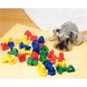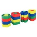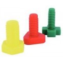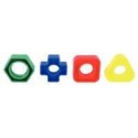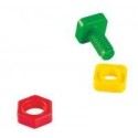 Sachet de 144 vis et écrous géants. 72 vis et 72 écrous en plastique. 4 formes et 4 couleurs différentes de vis et d''écrous. Tiges filetées de 3 diamètres différents. Développe la coordination des 2 mains, la motricité fine et permet des exercices de tri, de dénombrement. Longueur moyenne d''une vis : 5 cm. Diamètre moyen des écrous : 4 cm. Dès 18 mois.