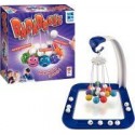 Badaboule. Contenu : 1 base, 1 bras, 1 crochet, 1 anneau, 2 plateformes de suspension, 4 bâtonnets, 7 suspentes, 14 boules de couleurs, 24 boules blanches, et une règle du jeu. But du jeu : A tour de rôle, chaque enfant pose une de ses boules blanches à l’aide du bâtonnet sur la grappe des boules de couleurs. Mais attention à ne pas faire tomber les boules blanches. Le vainqueur est celui qui n’a plus de boules blanches. Intérêt pédagogique : Développe l’adresse et la concentration. A partir de 5 ans De 2 à 4 joueurs