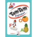 Tam Tam alphabet. Contenu : 62 cartes (9x10cm) avec l’alphabet illustré, 1 lexique, 1 règle des différents jeux. But du jeu : L’enfant doit retrouver la paire commune entre 2 cartes. Plusieurs variantes de jeu. Intérêt pédagogique : Découverte et apprentissage des lettres. De 1 à 4 joueurs. Durée de la partie : environ 10 minutes. A partir de 4 ans.