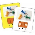 Boite de 90 perles + 30 cartes en anglais. Contenu : 90 jetons lettres minuscules, 30 cartes imagées (12x10cm) avec la solution au verso, 30 lacets. But du jeu : l’enfant pioche une carte et doit composer à l’aide des lettres et d’un lacet le mot de 3 lettres en anglais. Intérêt pédagogique : apprentissage de mots de 3 lettres courant de l’anglais. A partir de 4 ans