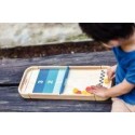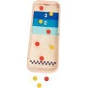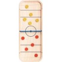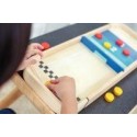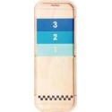 Jeu de palets 2 en 1. Contenu : 1 plateau de jeu réversible en bois (jeu de palets/jeu de lancer), 10 palets en bois, une barre en bois et 1 règle du jeu. Jeu d’adresse, l’enfant doit envoyer les palets à l’aide de l’élastique dans le camps adverse en les faisant passer par la petite trappe. De l’autre côté, il suffit de faire le meilleur score. Dimensions : 48x18.5x3.5cm A partir de 3 ans.