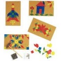 Jeu de marteau pour 4 enfants. Livré dans une boite en plastique avec couvercle.Contenu : 200 formes géométriques de 9 formes différentes et de 4 couleurs assorties, 4 marteaux en bois, 4 plaques en liège (25 x 15 x 1 cm), 4 plaques modèles et 1 boite de petits clous. But du jeu : l''enfant cloue les formes sur la plaque de liège pour reproduire les motifs proposés sur les plaque modèles.Intérêt pédagogique : reconnaissance des formes et des couleurs et développement de la motricité chez les jeunes enfants et de la créativité.