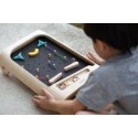 Mon 1er flipper en bois. Contenu : 1 flipper en bois 38x11x45cm, 1 bille, 14 piquets en bois, 2 pièces en bois, 20 élastiques. But du jeu : Flipper revisité pour les plus petits. La tirette en bas sert à lancer la bille vers le haut. Le but du jeu est de maintenir la bille en jeu le plus longtemps possible. Les enfants peuvent créer plus de défis en plaçant les élastiques et les piquets de différentes manières. A partir de 3 ans