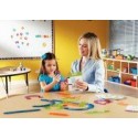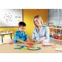Boite construction de lettres. Contenu de la boîte : 60 morceaux de lettres en PVC translucides de 4 couleurs différentes et 13 fiches d’activités recto-verso. But du jeu : l’enfant choisir une carte représentant une des lettres de l’alphabet et doit composer des lettres majuscule et minuscule en quelques étapes grâce à ces pièces à code de couleur. Les pièces s’emboîtent facilement. Le guide pédagogique propose 9 activités différentes pour animer le jeu.