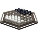 ABALONE. Contenu de la boîte : 1 Plateau de jeu plastifié hexagonal de 27x31cm, 14 billes de porcelaine noire et 14 blanches. But du Jeu : Être le premier à éjecter 6 billes adverses hors de l’hexagone, bille après bille. Chaque joueur déplace 1, 2 ou 3 de ses billes à chaque tour. 8 schémas différents de départ pour corser la partie. Intérêts Pédagogiques : Jeu de stratégie et de réflexion. Durée de la partie est d''environ 30 minutes. A partir de 7ans. 2 Joueurs obligatoirement.