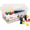 Boite de 200 Cubes Couleurs Assortis. 200 cubes de 2cm emboîtables pour jouer avec les Fiches d''Exercices 79780 et 79781.