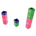 Set de Cubes Mathématiques Complets empilables. Ce set est composé de 9 Tours de 12x2cm composé au total de 51 pions empilables. 3 Faces du cubes sont renseignés de la façon suivante : - cube rouge (1, 100%, 1.0)- cube rose (1/2, 50%, 0.50)- cube orange (1/3, 33.3%, 0.33)- cube jaune (1/4, 25%, 0.25)- cube vert (1/5, 20%, 0.20)- cube turquoise (1/6, 16.6%, 0.166)- cube bleu foncé (1/8, 12.5%, 0.125)- cube mauve (1/10, 10%, 0.10)- cube noir (1/12, 8.3%, 0.083).Intérêts Pédagogiques : Ce set complet permet aux enfants de se perfectionner sur les équivalence entre les fractions, pourcentages et valeurs. A partir de 6 ans.