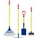 Lot de 4 outils de jardin grand modèle. Outils essentiels pour tout jardin scolaire et très populaires auprès des jardiniers en herbe. Ce kit comprend un balai à gazon (110cm), un balai (90cm), un râteau (105cm) et une pelle (75cm). Têtes métalliques robustes et manches plastique ergonomiques trés confortables. A partir de 3 ans.