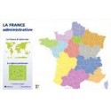 Carte de France administrative format 1,20 x 0,80 mètre. Carte muette avec les régions et les départements, conçue pour réunir tout à la fois des informations physiques et politiques. Véritable support de travail dans tous les domaines de la géographie et de l''histoire. Visuel moderne et très lisible. Impression quadrichromie, plein format. Polypropylène 5/10ème. Avec oeillets. Indéchirable, insensible aux U.V, lavable. Revêtement effaçable à sec haut de gamme. Avec un espace pour le maître, pour inscrire une légende complémentaire, un commentaire...