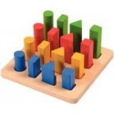 Plateau de 4 formes géométriques. Contenu du Jeu : 1 plateau en bois (17,5x17,5cm), 16 formes géométriques de 4 tailles et couleurs différentes. But du jeu : après avoir observé, trié et compté les pièces, l’enfant les repositionne sur le plateau en bois. Intérêts Pédagogiques : apprentissage des formes géométriques A partir de 2 ans