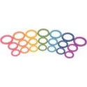 Boite de 21 anneaux en bois couleurs assorties. Contenu : 7 anneaux de d. 4.8cm, 7 anneaux de d. 5.6cm, 7 anneaux de d.7cm Aux 7 couleurs de l’arc en ciel. Idéal pour le tri, le comptage, le dénombrement, il peut également permettre aux enfants d’empiler, de construire, et de développer leur créativité et leur imagination. A partir de 10 mois.