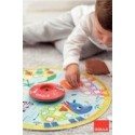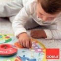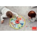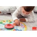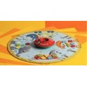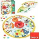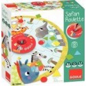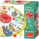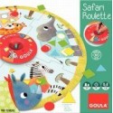 Safari roulette. Contenu du Jeu : 1 roulette en PVC (Diam. 12cm), 36 formes géométriques de couleurs en carton, 6 pièces à assembler et une notice de jeu. But du jeu : l’enfant fait tourner la roue et observe la forme et la couleur. Tous les joueurs dont les animaux contiennent une forme identique la placeront sur leur animal. Le premier joueur qui complète son animal gagne la partie. Intérêts Pédagogiques : Observation, rapidité et chance. A partir de 3 ans Durée de la partie : 10mn De 1 à 6 joueurs