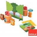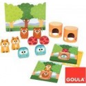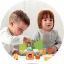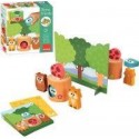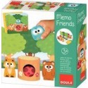 Mémo friends. Contenu du Jeu : 2 troncs en carton, 20 cartes, 8 pièces en bois et 1 décor. But du jeu : une carte est tirée au sort, l’enfant l’observe attentivement et essaye de construire la scène de mémoire. La notice propose une variante de jeux pour plusieurs joueurs. Intérêts Pédagogiques : travaille l’observation, la concentration et la mémoire. A partir de 3 ans