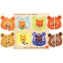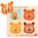 Encastrement en bois 8 pièces, émotions des oursons. Contient 1 plateau et 8 pièces en bois avec boutons de préhension à encastrer pour reconstituer le visage expressif de 4 oursons composé de 2 pièces chacun. Encastrement duo pour apprendre à reconnaître les émotions dès le plus jeune âge. Petite saynète imprimée au fond du plateau pour expliquer le pourquoi des émotions. Dimensions du plateau : L.28 x l.28 x ép.0,8 cm. Dès 2 ans.