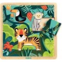Puzzle en bois 15 pièces, la jungle. Puzzle de 15 pièces en bois épais (0,5 cm) riche en détails et en couleurs représentant de joyeux animaux ! Véritables supports d’observation qui favorisent le développement du vocabulaire et la curiosité des enfants. Livré dans son plateau. Dimensions : L.25 x l.25 cm. Dès 3 ans.