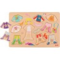 Encastrement en bois, petite fille à habiller. Contient 1 plateau et 10 pièces en bois avec boutons de préhension. L’enfant doit habiller la petite fille dessinée sur le plateau en associant 2 vêtements assortis : une tenue d’été ou d’hiver, une tenue pour l’école ou pour le sport et un pyjama. Il peut aussi mélanger les vêtements selon son imagination pour créer des tenues originales ! Des accessoires sont dessinés sur le plateau pour compléter les tenues. Développe la logique et le vocabulaire des enfants qui se familiarisent avec le nom des vêtements à choisir en fonction des situations. Dimensions du plateau : L.30 x l.21 x ép.0,8 cm. Dès 12 mois.