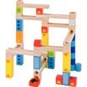 Toboggan à billes en bois, 55 pièces. Kit de construction en bois verni à assembler selon son imagination pour créer différents parcours et faire tomber les billes jusqu''en bas ! Comprend 55 pièces de formes et de couleurs différentes : 36 blocs de construction pour la structure, 6 billes en verre (Ø.1,5 cm) à faire glisser le long de 12 gouttières et 1 récupérateur de billes. La créativité des enfants est sans limite car les possibilités sont infinies. Idéal pour travailler la dextérité, la logique et l''organisation spatiale. Livré avec 6 modèles de construction au dos de la boite de jeu. Côté d’un cube : 4 cm. Dimensions d’une gouttière : L.22 x l.4 x H.4 cm. Dès 5 ans.