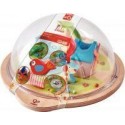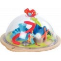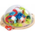Globe aventure magnétique. Contenu du Jeu : magnifique globe en bois avec un plexiglass (env : 30cm diam), But du Jeu : à l’intérieur des petites billes de couleurs qu’il faudra, en basculant le globe de toute part, faire circuler dans des toboggans, labyrinthes, sonnette … Intérêt Pédagogiques : motricité, habileté et patience A partir de 24 mois.