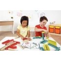 Boite de 32 poutres connectables + guide. Jeu de construction durable et résistant composé de 32 poutres colorées, fabriquées dans un matériau écologique contenant des fibres de bois. Livré dans un sac de rangement en tissu avec un guide pédagogique complet de 40 activités organisées en fonction du niveau de difficulté. Les poutres se connectent entre elles par simple emboitage pour réaliser de multiples constructions selon son imagination ou selon les modèles illustrés dans le guide. Stimule la créativité et l’ingéniosité des plus jeunes qui travailleront leur concentration et leur persévérance pour réussir à construire leurs premières structures en suivant un plan. Dimensions d’une poutre : L.14 x l.2,5 x ép.2 cm. Dès 2 ans.