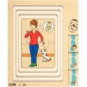 Puzzle 4 niveaux, la grossesse. Puzzle en bois à 4 niveaux constitué de 42 pièces au total (4, 6, 12 et 20 pièces par niveau). Les enfants découvrent niveau aprés niveau la métamorphose du corps de la maman pendant la grossesse jusqu’à la naissance du bébé. Développe l''observation, le raisonnement logique et favorise la structuration du récit autour d''un thème familier. Dimensions : L. 20 x l. 24,5 cm. Épaisseur : 2 cm.  Dès 3 ans.