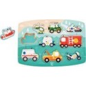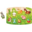 Lot de 4 encastrements à boutons, 9 pièces. 4 encastrements en bois de 9 pièces : les animaux de la jungle, les véhicules, les engins de chantiers et les animaux de la ferme. Le bouton fixé sur chaque pièce permet une prise en main facile par les plus petits. Repérage visuel au fond du plateau pour guider l''enfant. Permet de développer la motricité fine, la coordination œil / main et le sens de l''observation. Peinture à base d’eau. Dimensions du plateau (L x l) : 29 x 20 x ép. 0,8 cm. Dès 2 ans.